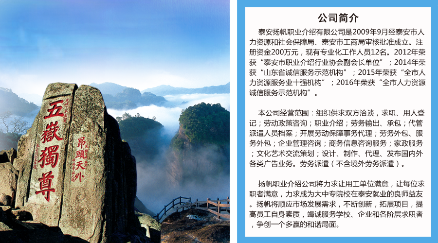 • 【招聘公告】泰安揚帆職業介紹有限公司某國有企業招聘簡章 [2025-11-05]